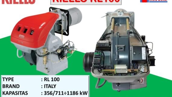 Burner Riello RL 50 adalah Burner/Pembakar dengan dua Nozzle atau Two Stage/ dua tahap pembakaran, pembakaran api satu dengan kapasitas 127.000 – 255.0000 Kcal/h dan pembakaran Api dua dengan kapasitas Maksimal 510.000 Kcal/h. Burner Riello Type RL burner Paket Brand Italy. kebutuhan bakar bakar Solar Min 12,5 – 50 Kg/Jam.