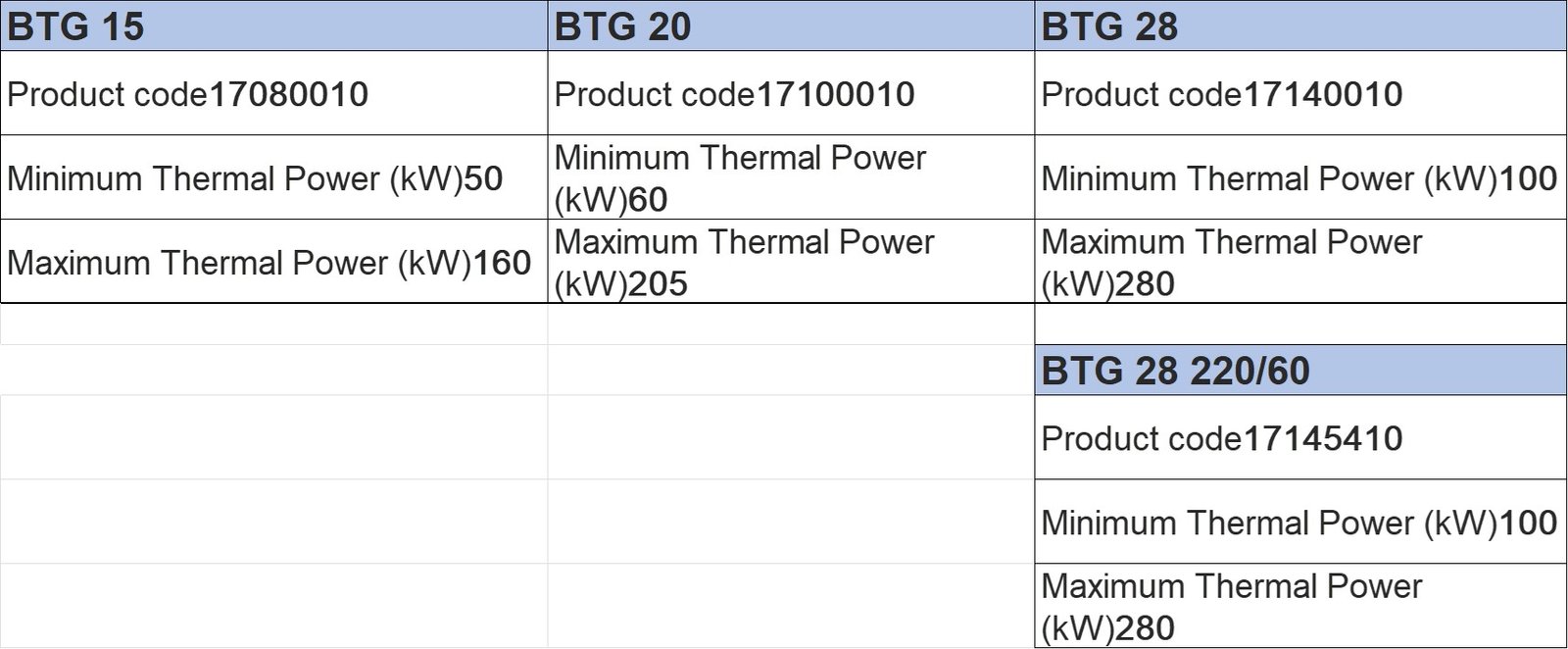 - Keluaran termal : 60 ÷ 205 kW
