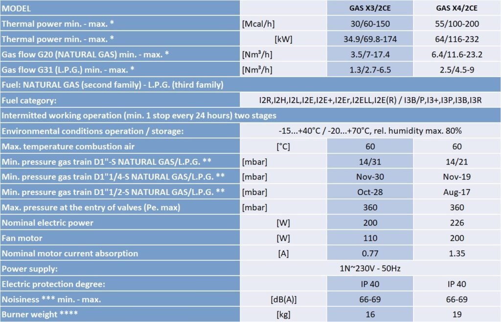 TECHNICAL DATA AND OPERATING RANGE DIAGRAM GAS X3/2CE – GAS X4/2CE