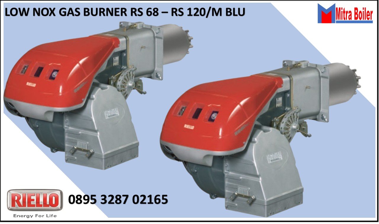 Seri pembakar RS 68 – 120/M BLU mencakup rentang pembakaran dari 150 hingga 1300 kW, dan telah dirancang untuk digunakan dalam boiler air panas suhu rendah atau sedang, boiler udara panas atau uap, boiler minyak diatermik.