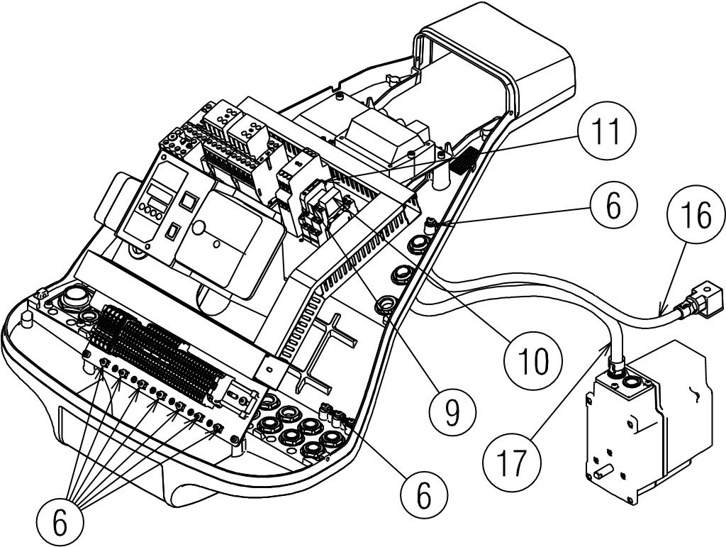 LGK untuk operasi berkelanjutan FS2 untuk model RS 310-410-510-610/M; - – Starter bintang/delta untuk motor kipas (Motor kipas starter langsung untuk model RS 310-410)