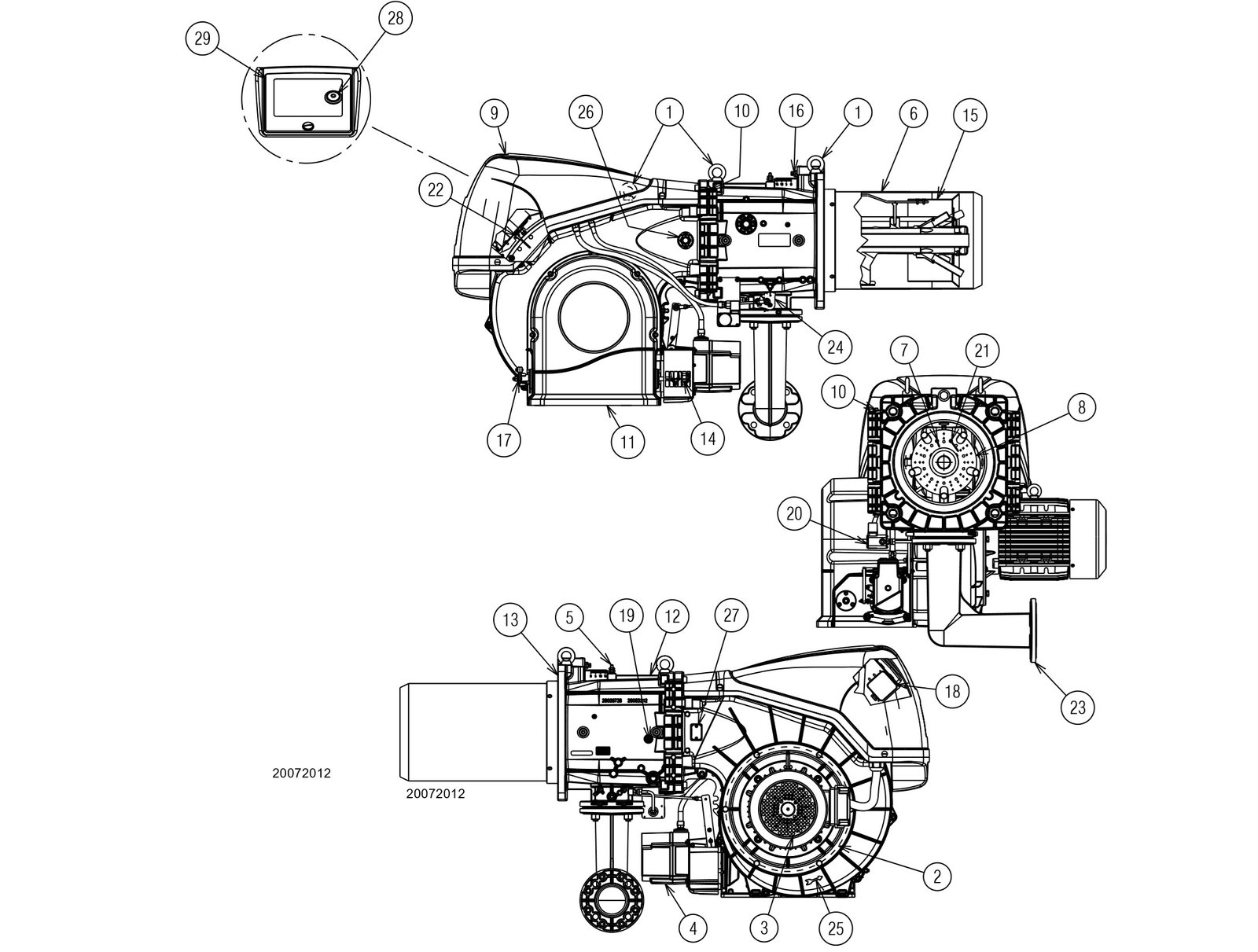Pembakar gas monoblok dengan rancangan paksa dan pengoperasian modulasi, sepenuhnya otomatis, terdiri dari: