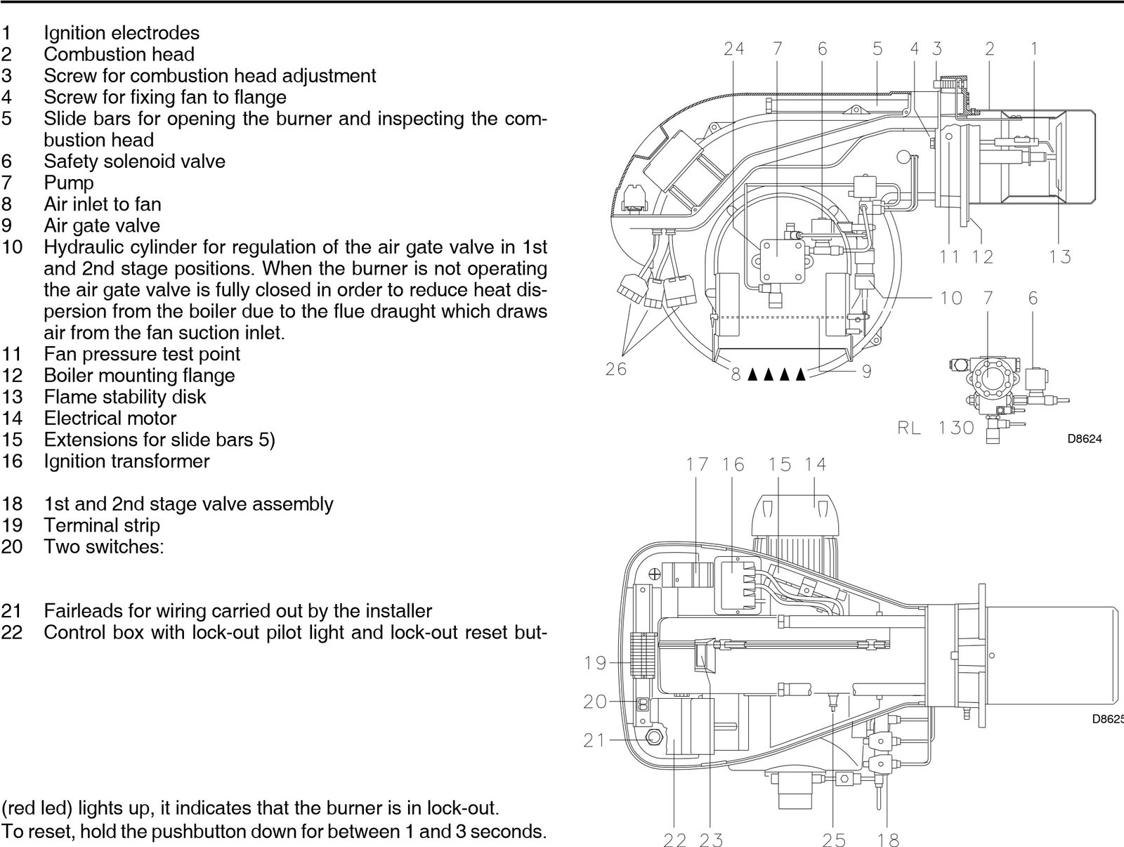 Seri pembakar RL 130 mencakup rentang pembakaran dari 948 hingga 1540 kW, dan telah dirancang untuk digunakan dalam boiler air panas suhu rendah atau sedang, boiler udara panas atau uap, boiler minyak diatermik.