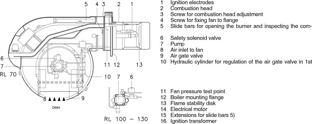 DESKRIPSI BURNER RIELLO RL28/RL38/RL50