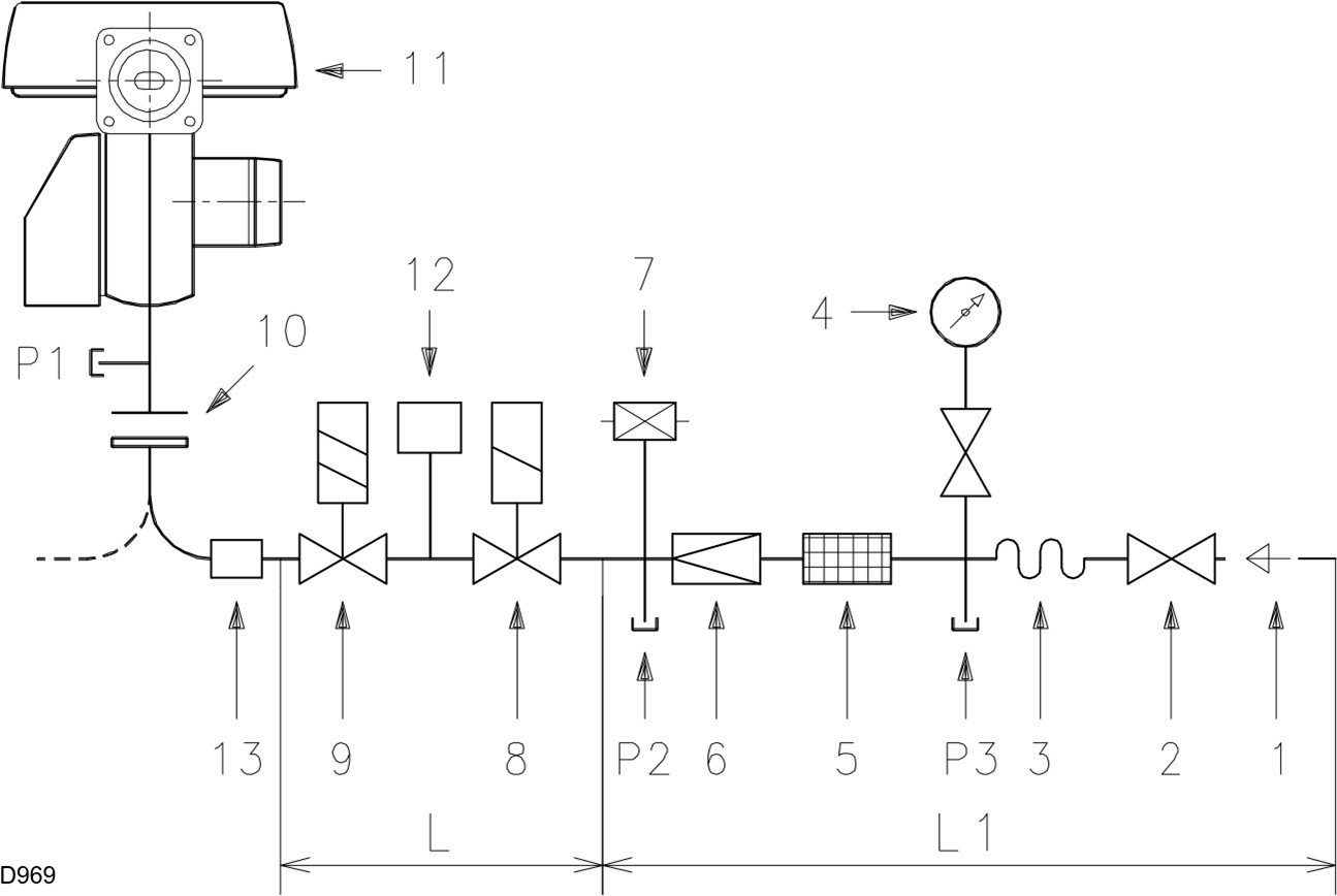 • Solenoid gas 8)-9) harus sedekat mungkin dengan pembakar untuk memastikan gas mencapai kepala pembakaran dalam rentang waktu aman 3 detik.