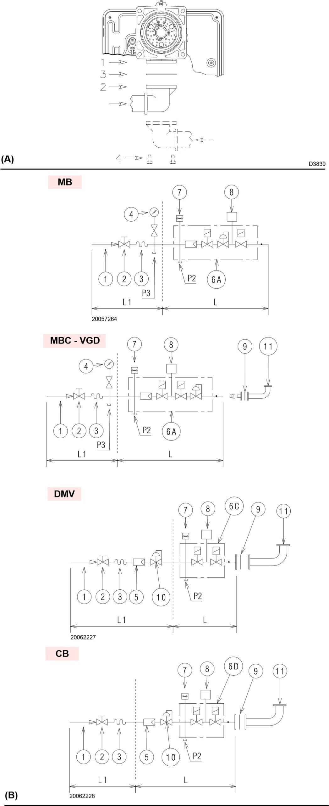 8 Kontrol kemudahan, disediakan sebagai aksesori atau terintegrasi, menurut kode gas ramp. Menurut standar EN 676, kontrol diam wajib untuk generator dengan daya maksimum melebihi 1200 kW. 9 Junta, hanya untuk versi “bordir”