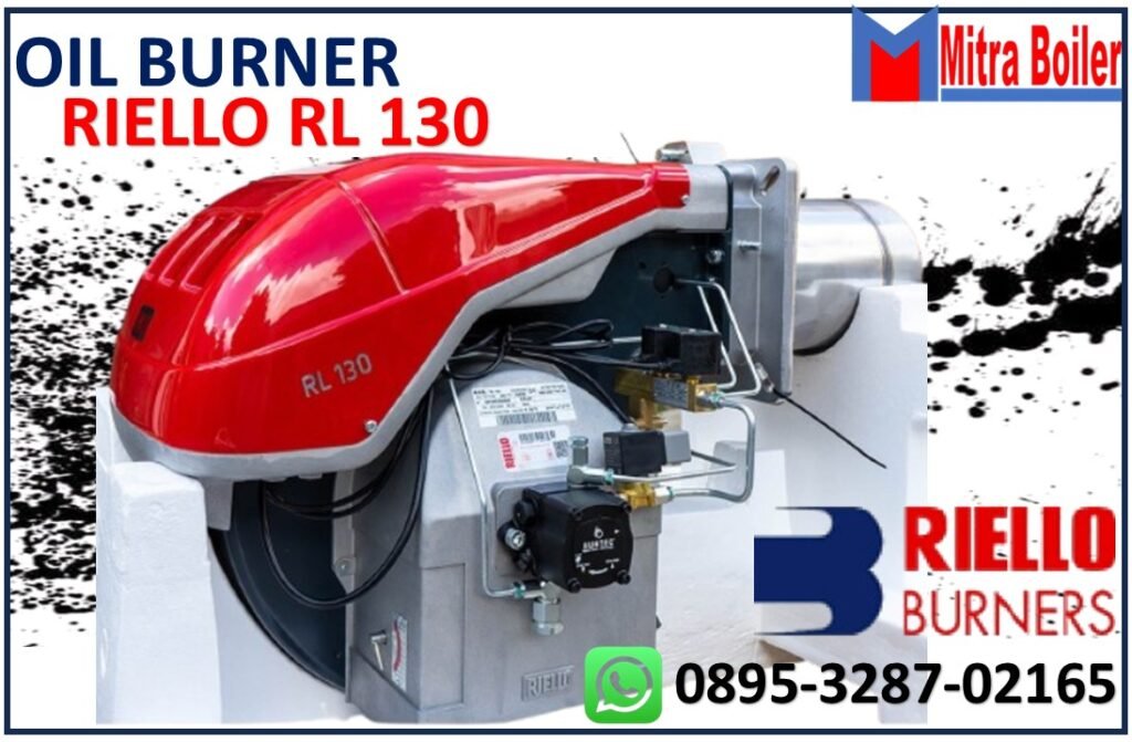 Burner Riello type RL 130 adalah burner bahan bakar solar dengan kapasitas Output 486/948 ÷ 1540 kW, dengan 2 nozzle/dua tahap pembakaran, operasi two stage Api satu dan Api dua. burner dilengkapi dengan panel kontrol berbasis mikroprosesor, yang memberikan indikasi status burner dan penyebab kerusakan. Optimalisasi emisi suara dijamin oleh desain khusus sirkuit hisap udara dan material kedap suara yang terintegrasi.