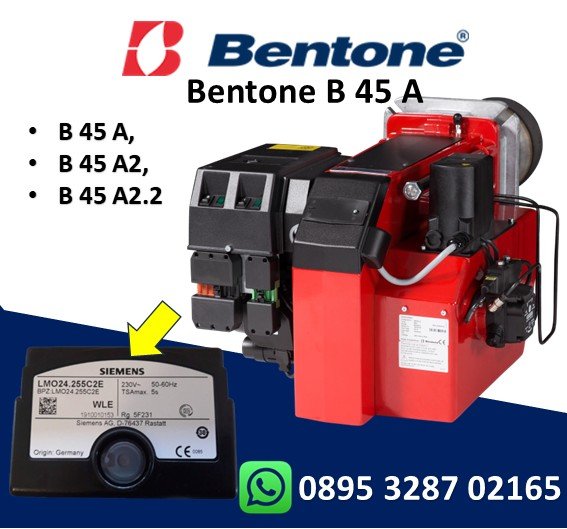 Burner Bentone B 45A/B 45 A2/ B 45 A2.2 Adalah Pembakar dengan bahan bakar minyak solar dengan Kapasitas: 8,5-47 kg/jam (96-557 kW) . Bentone B 45 Seri pembakar menengah Bentones dirancang dengan baik dan kokoh, ditujukan untuk proses industri atau pemanasan bangunan komersial semi-besar. Selama bertahun-tahun, pembakar ini telah menjadi tulang punggung Bentone, dan kami terus memodernisasi pembakar kami untuk memenuhi tuntutan regulasi modern dan tingkat NOx yang lebih rendah.