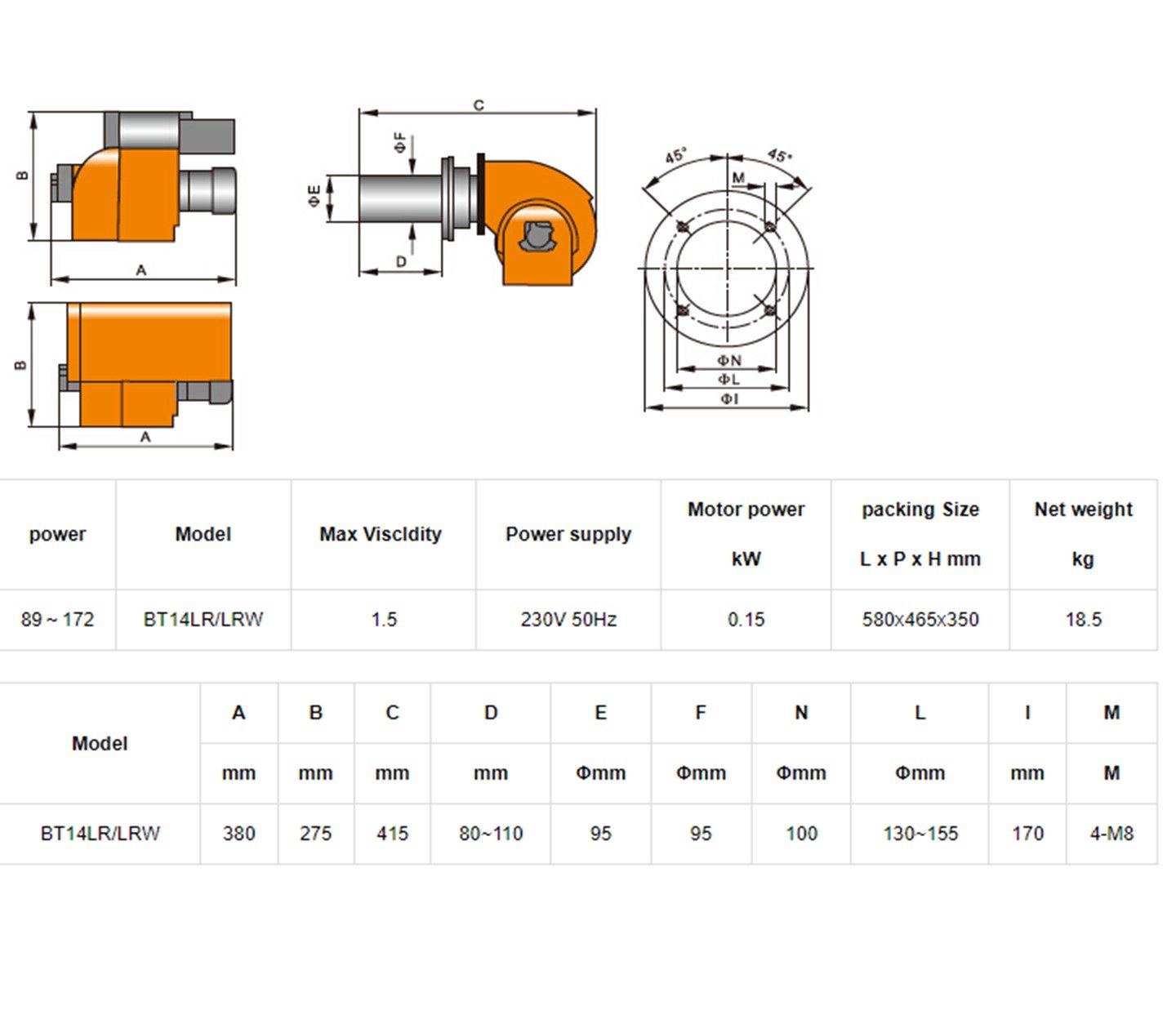 ONE STAGE LIGHT OIL BURNER BAITE BT14L